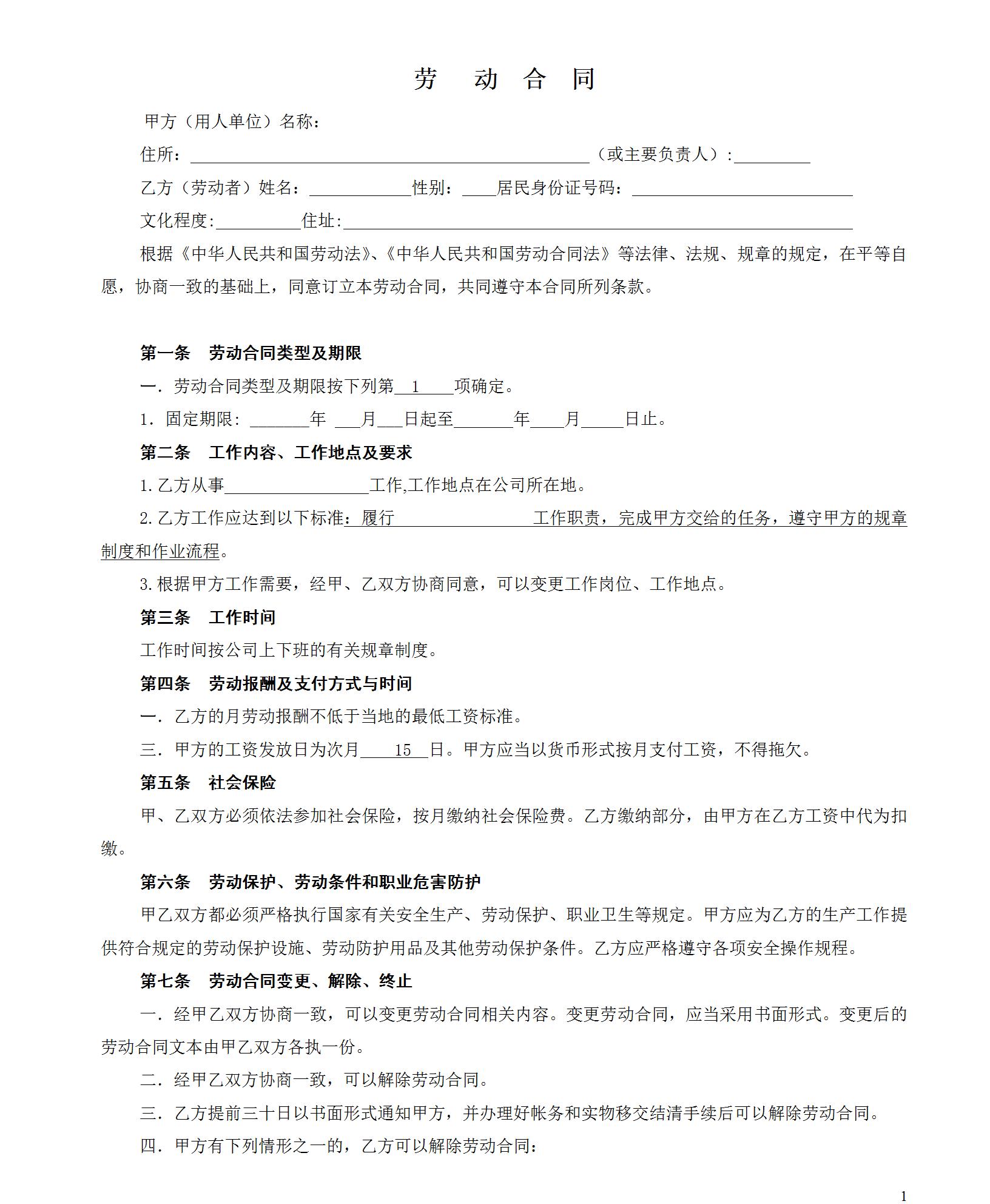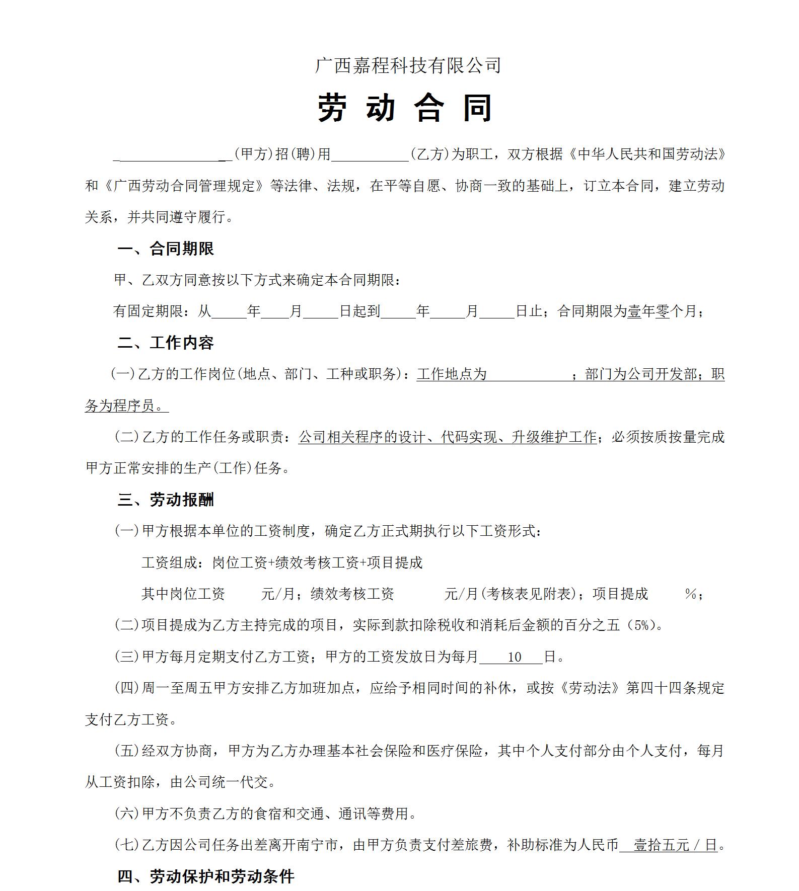 甲方根据本公司承揽工程的需要,面向社会招聘员工,乙方对甲方充分了解后,愿到甲方工作,为明确双方的权利和义务,依据有关法规经双方协商同意,签定如下劳动合同,双方共同遵照执行。